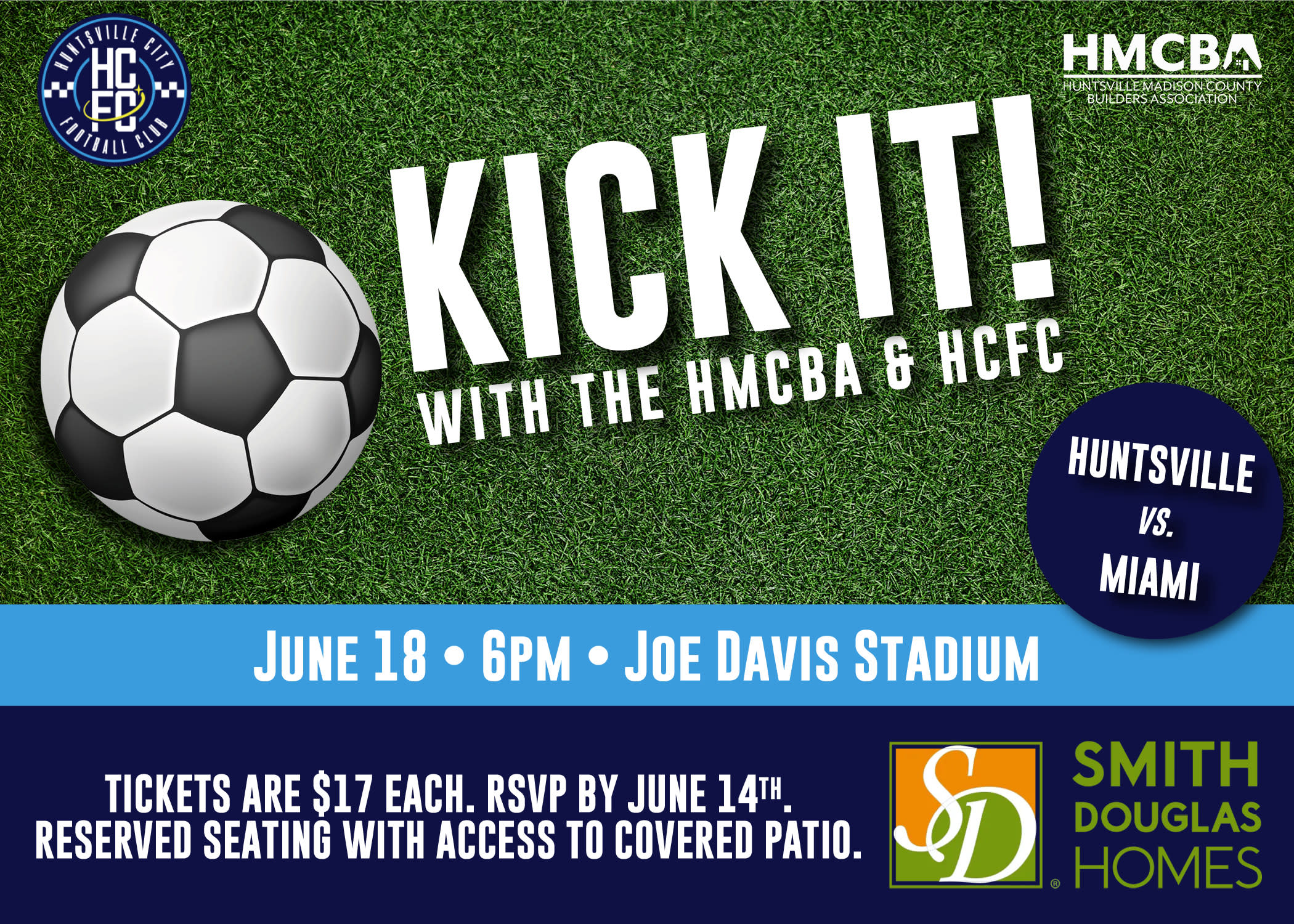 Kick it with the HMCBA as we cheer on Rocket City's newest sports team, the Huntsville City Football Club, at the newly renovated Joe Davis Stadium.